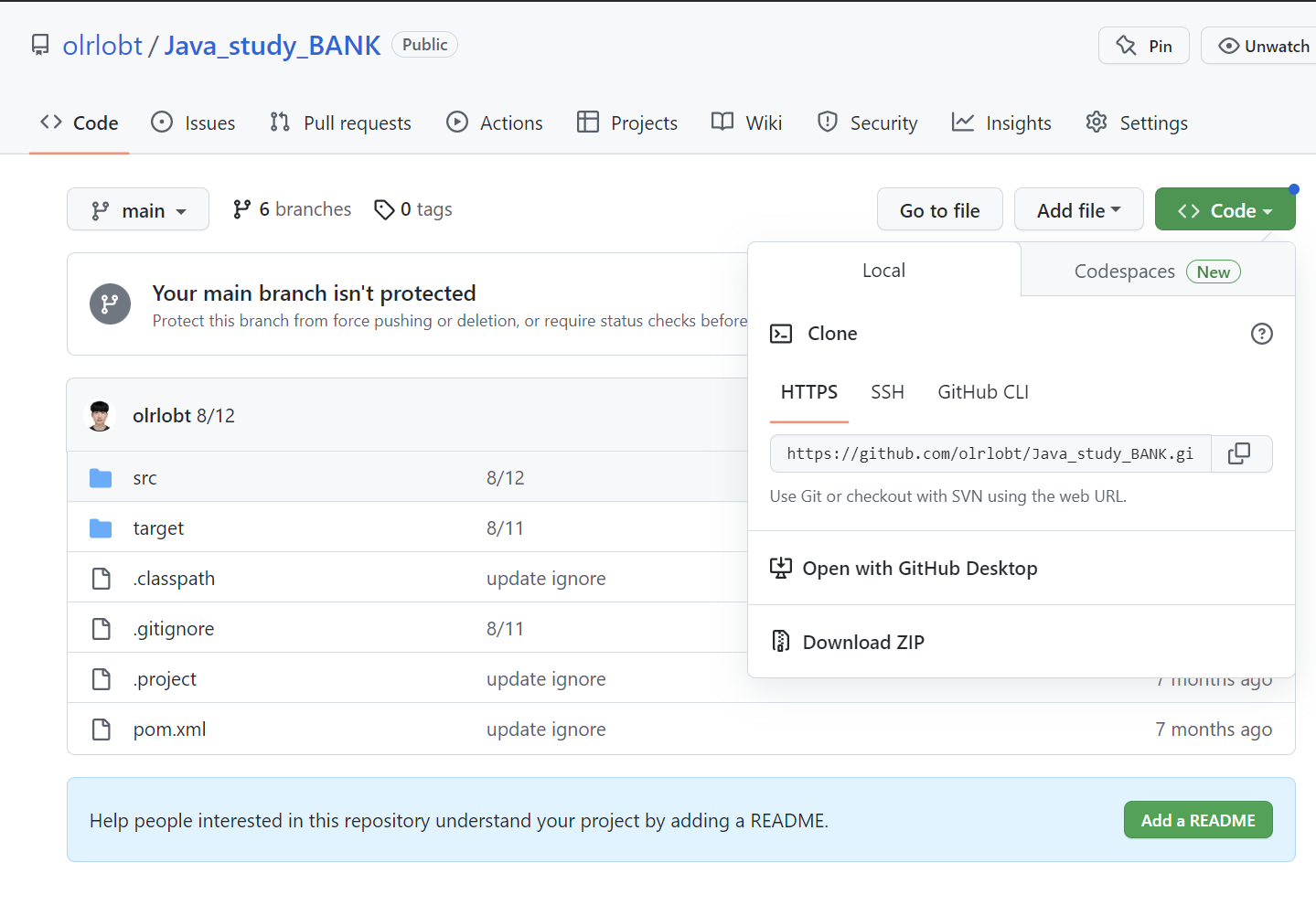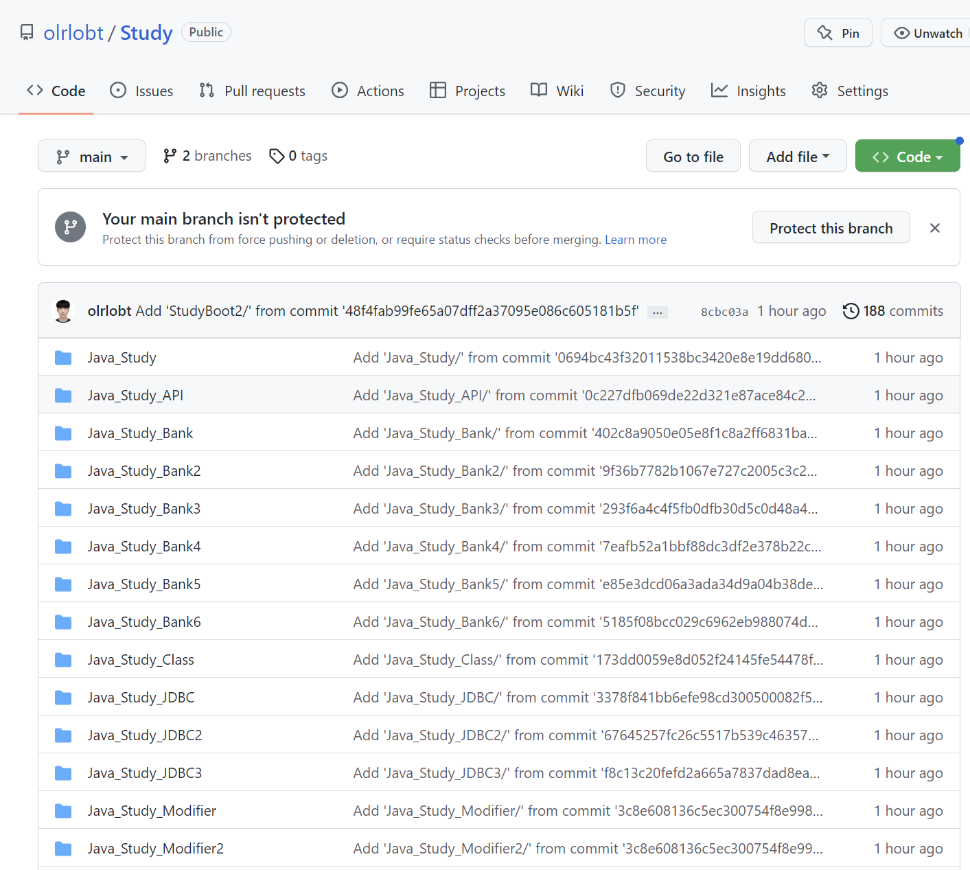 이번엔 Java_Study_Bank5의 이름으로 Study_Spring1 브랜치를 옮겨보았다.