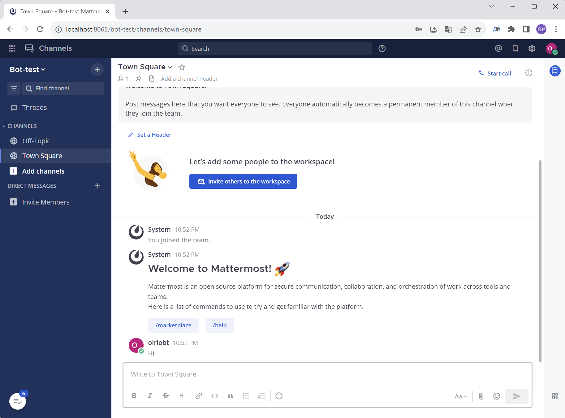 나 역시 매터모스트를 사용하고 있고, 봇 기능과 Webhook에 관심이 있어서 개인 서버를 열어