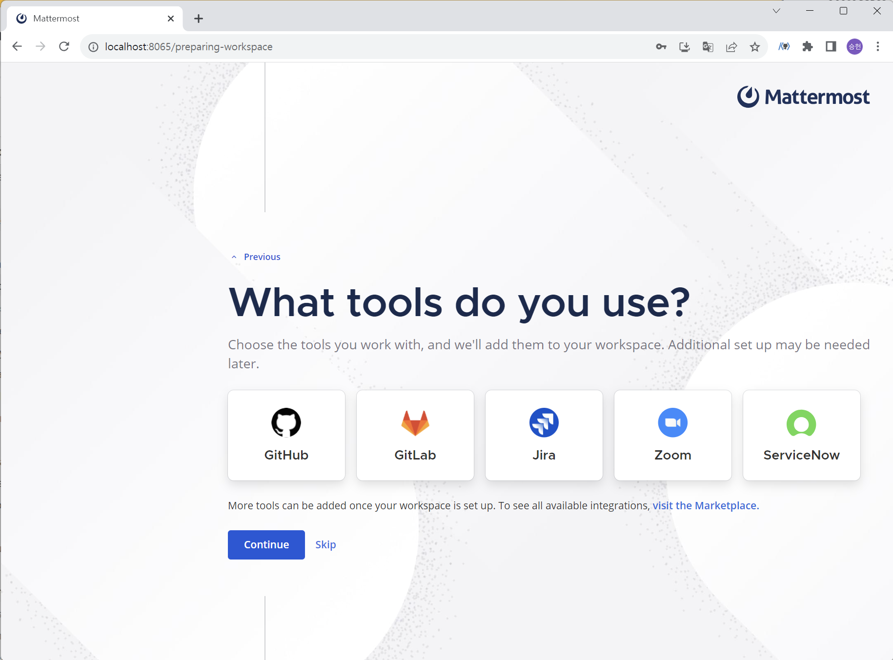 다른 서비스 연결이 필요하면 선택해 주면 되고, 없으면 Skip 하자.
