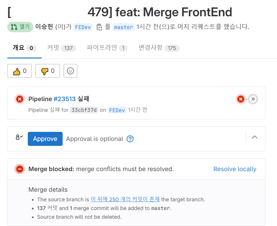 GitLab에서 MR을 날리는 과정에서 다음과 같은 오류가 발생했다.