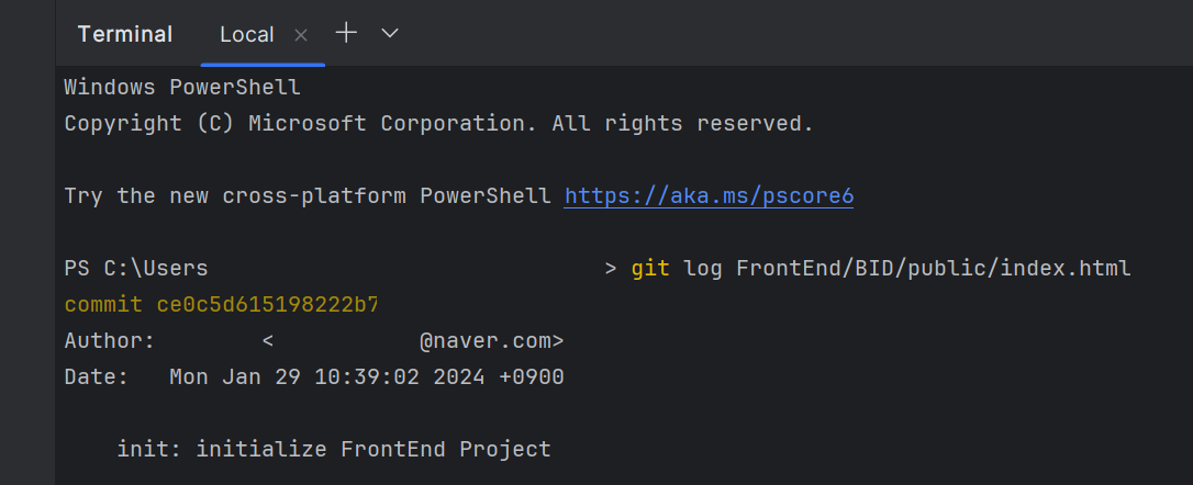 해당 파일에 대한 내역을 오로지 하나, 심지어 initial commit인 프로젝트를 생성할 때 만들어진 파일이었다. 그렇다면 커밋 상으로 삭제된 파일은 아니라는 뜻이다.