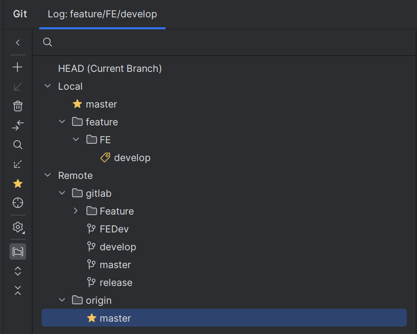 상단의 gitlab이 Gitlab 저장소에서 가져온 브랜치 현황들이다.